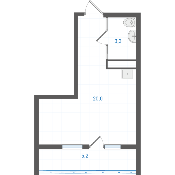 Планировка является типовой. Площади помещений, расположение и размеры венткоробов могут меняться в зависимости от этажа. Уточнение проектных данных в офисе продаж.