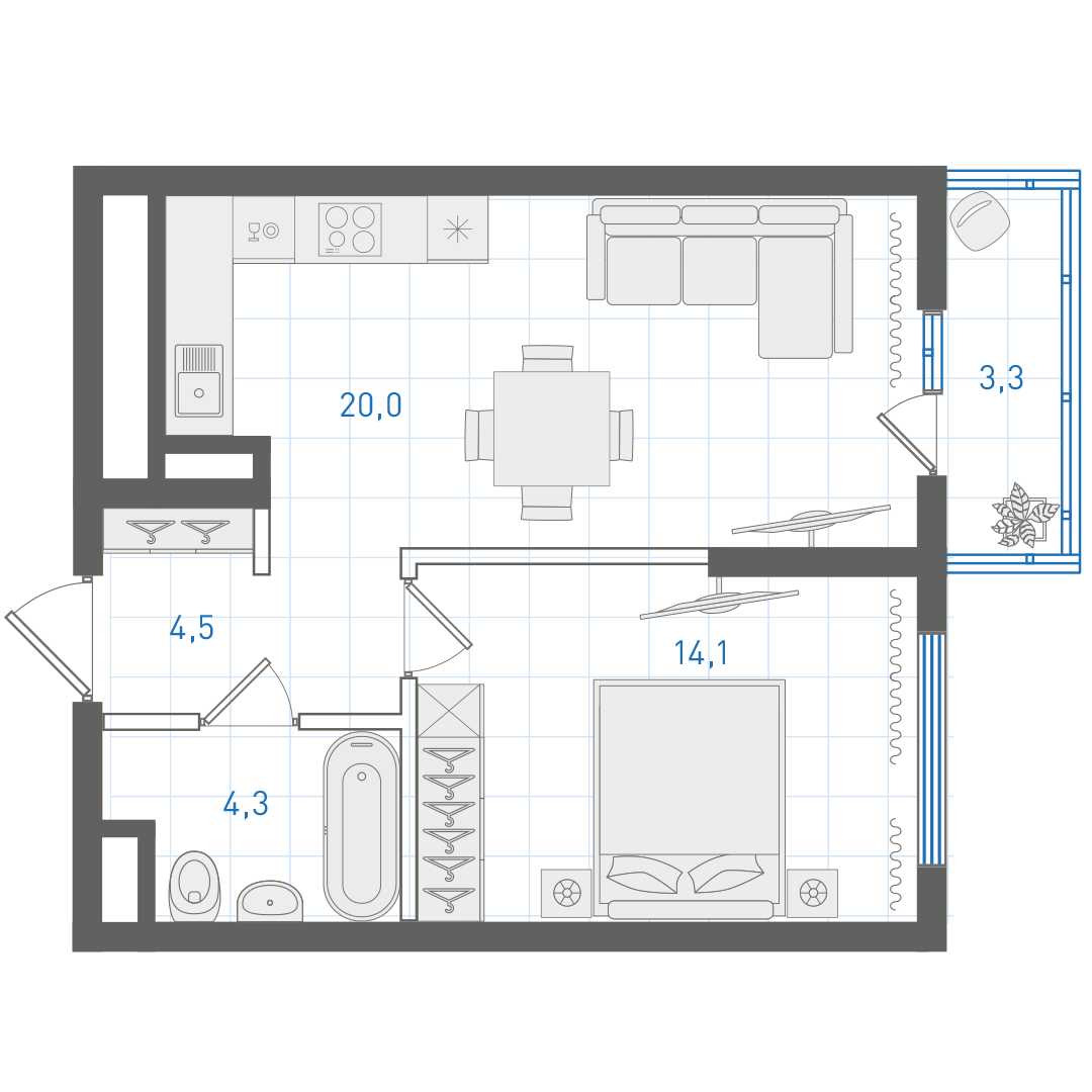 43.9 м²