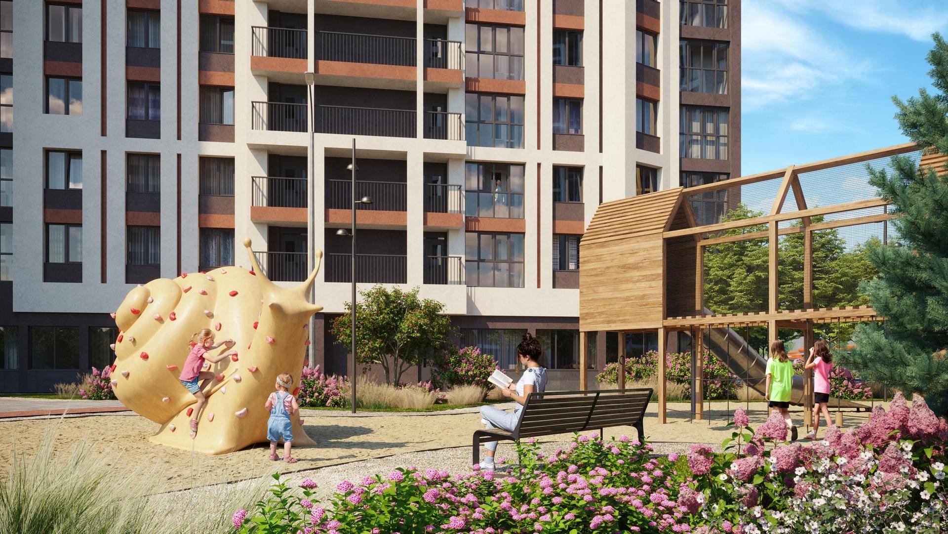 Первая – функциональные и практичные планировки и необычная архитектурная композиция из башни-трилистника в обрамлении эффектных многоэтажек.
