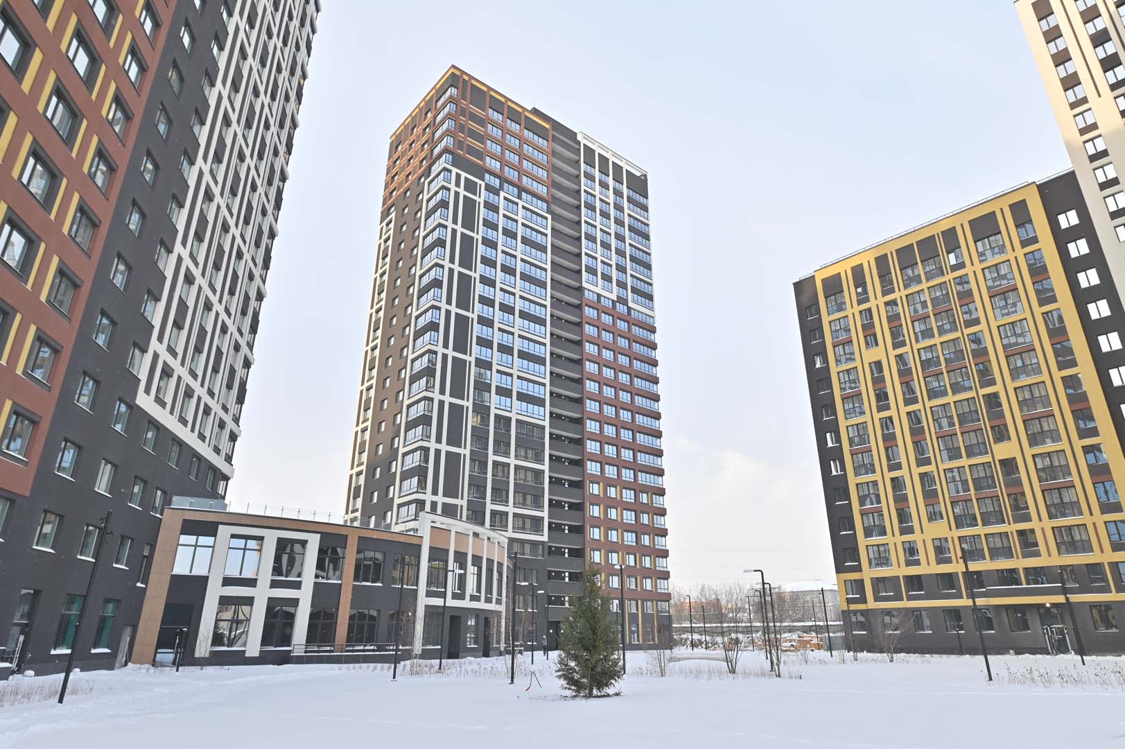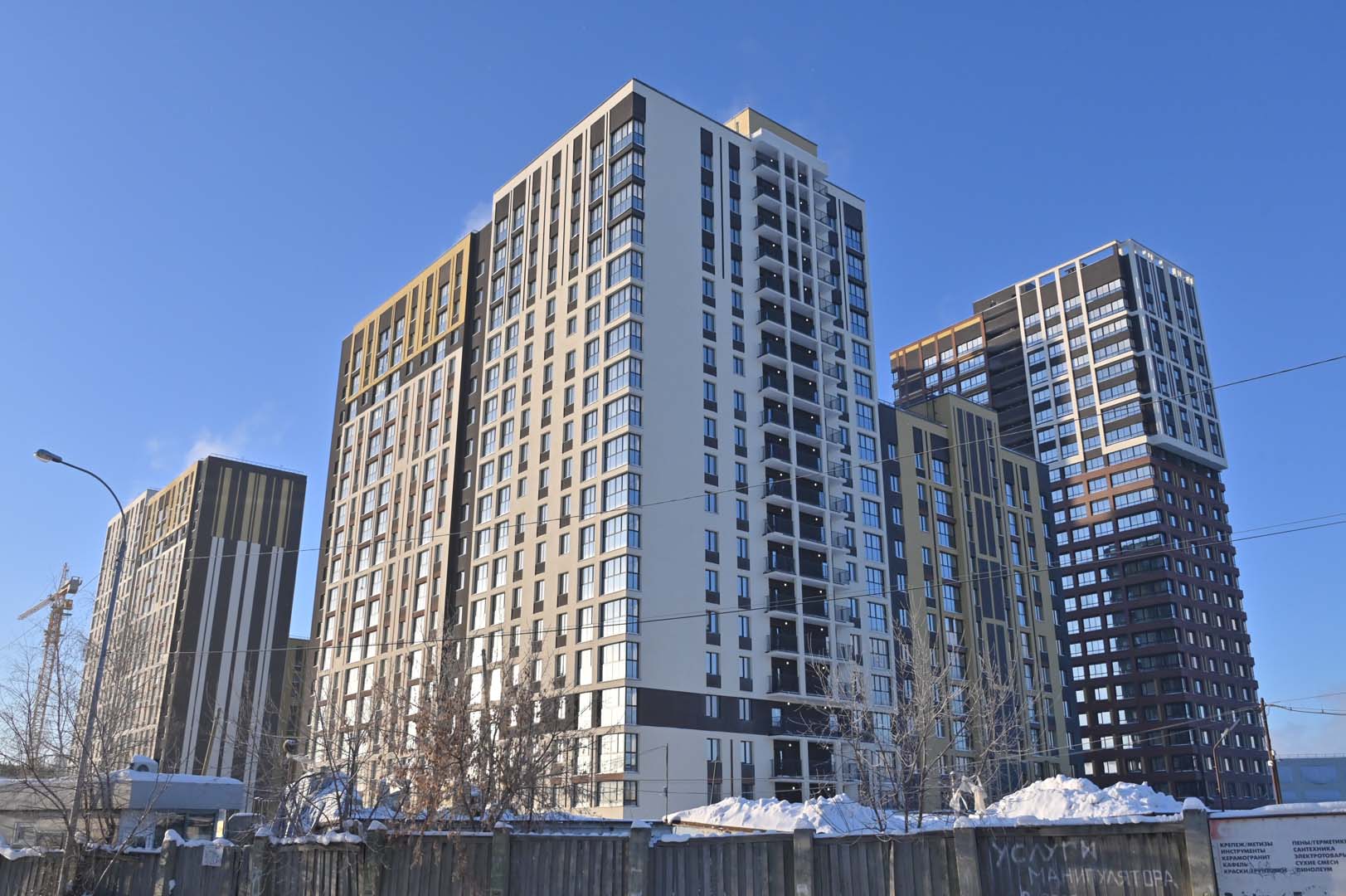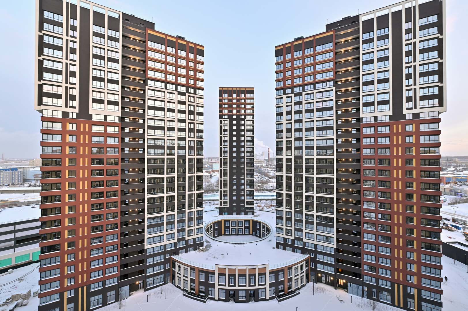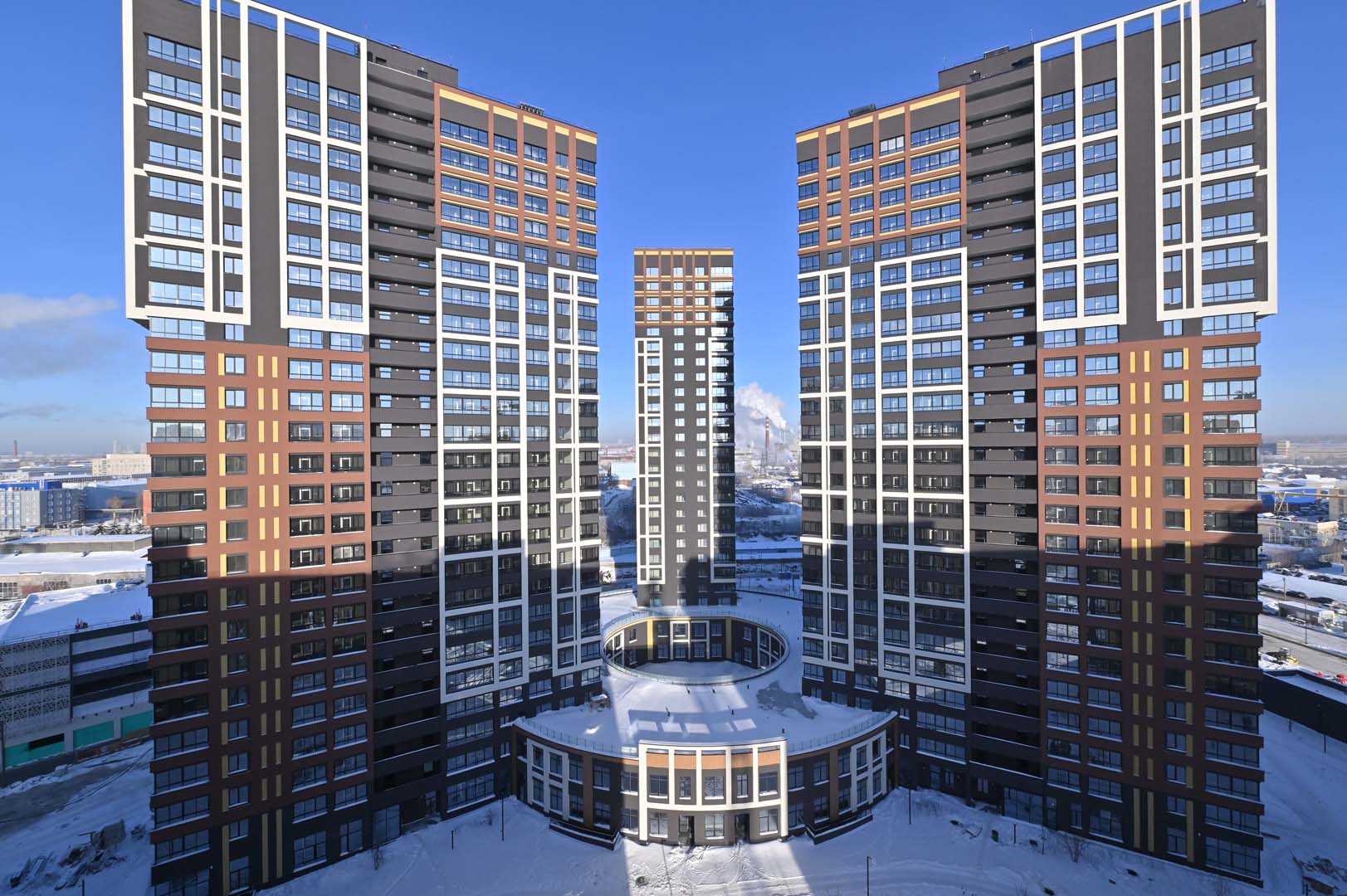 Первая – функциональные и практичные планировки и необычная архитектурная композиция из башни-трилистника в обрамлении эффектных многоэтажек.