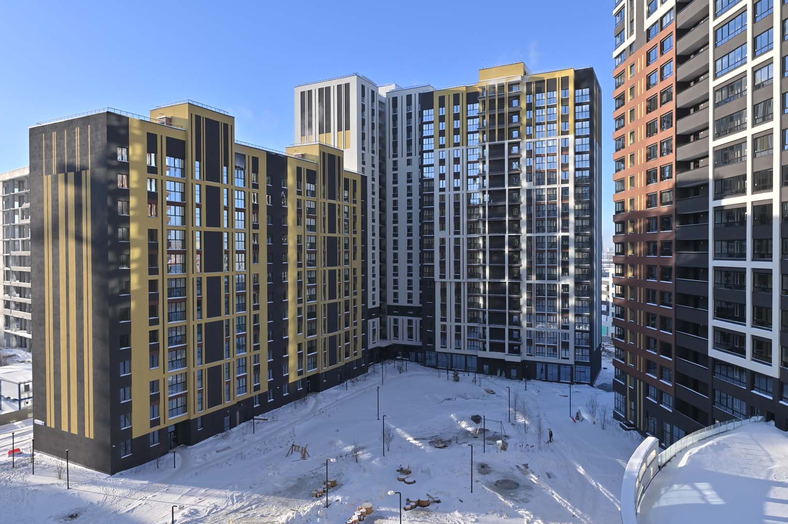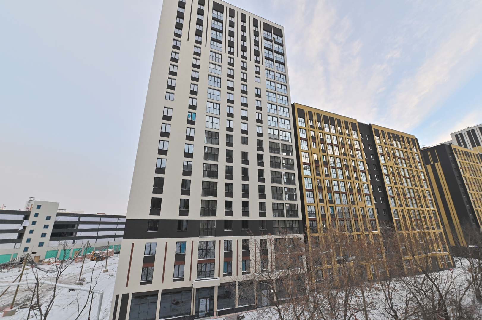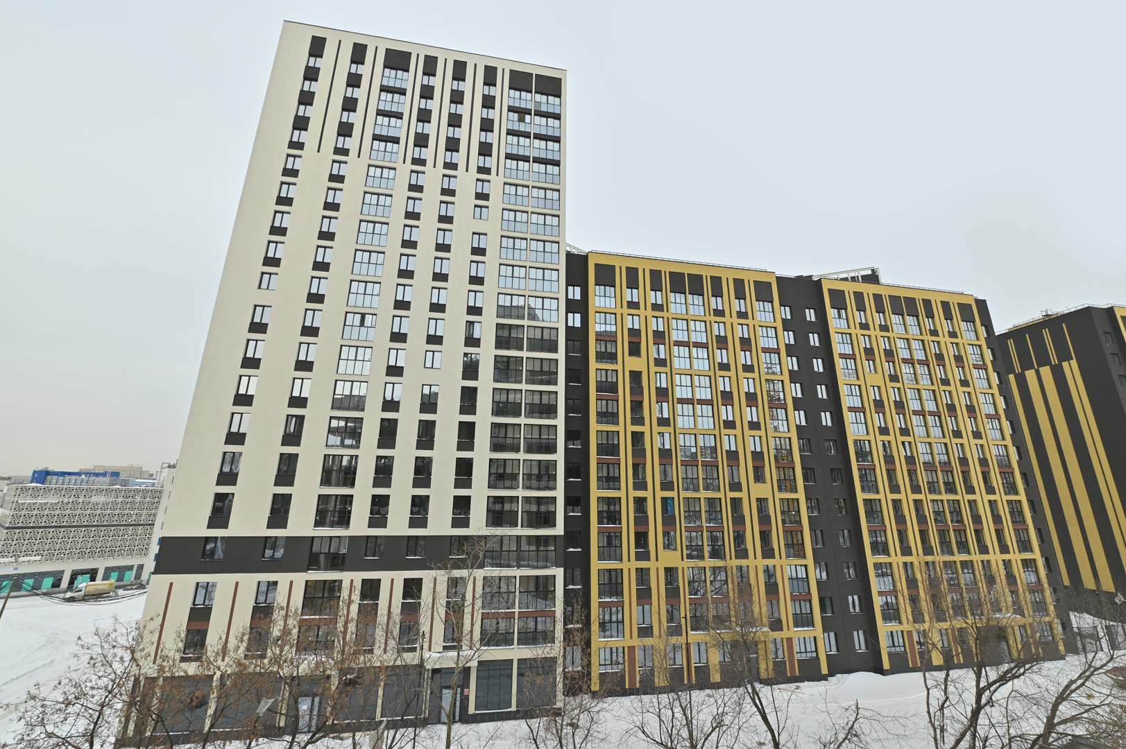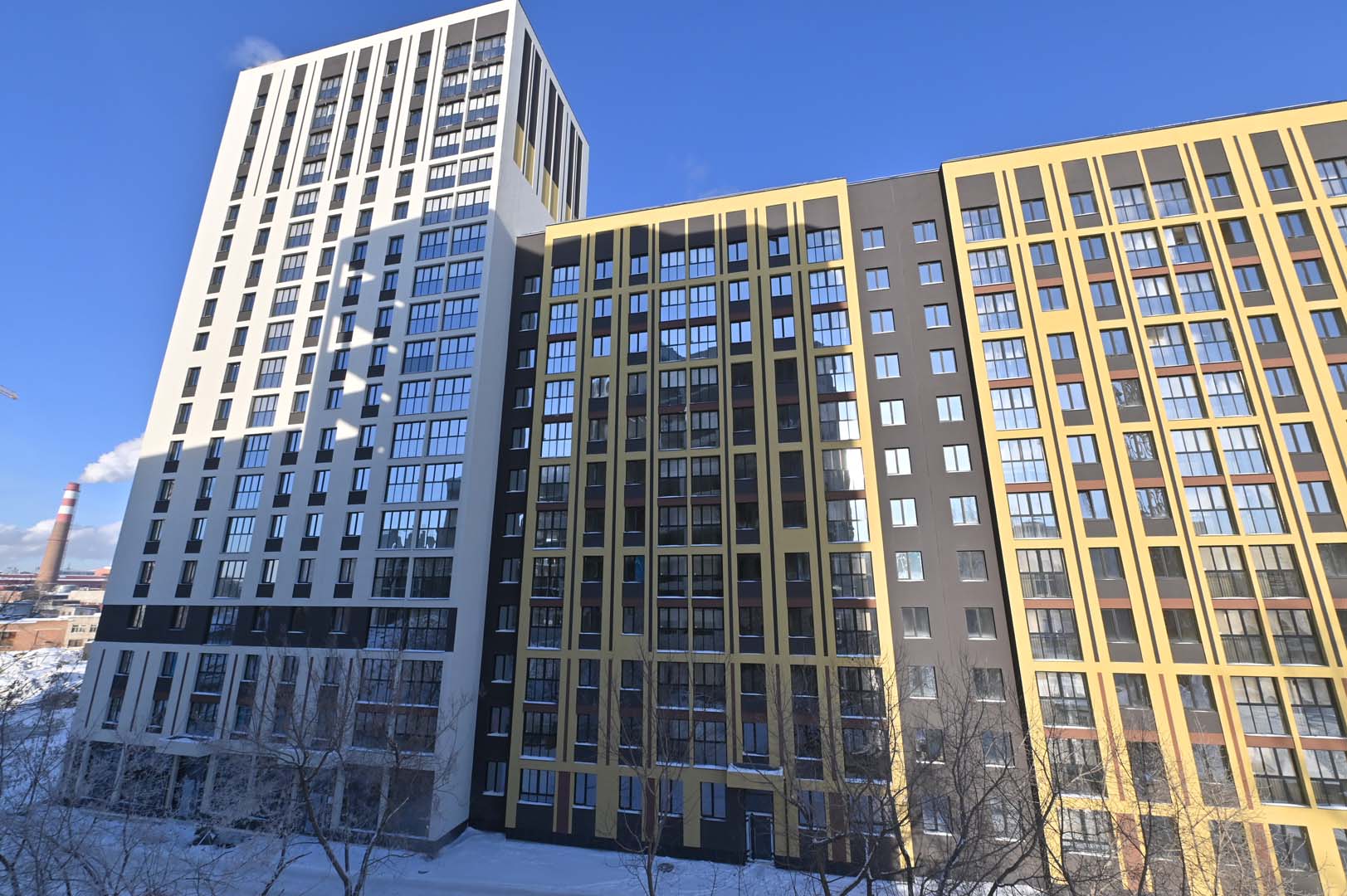 Первая – функциональные и практичные планировки и необычная архитектурная композиция из башни-трилистника в обрамлении эффектных многоэтажек.
