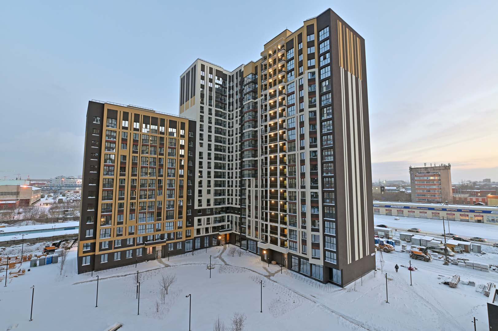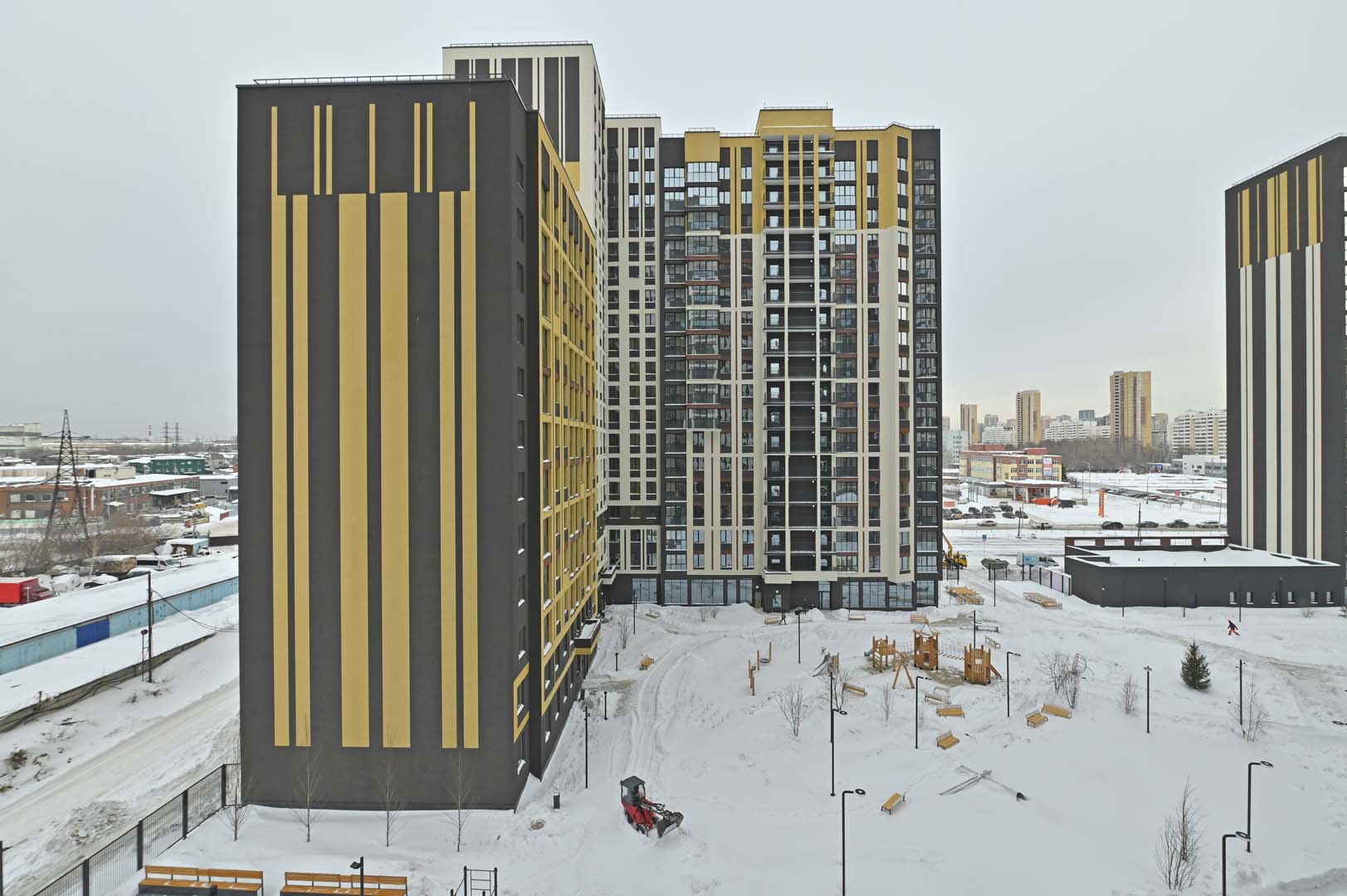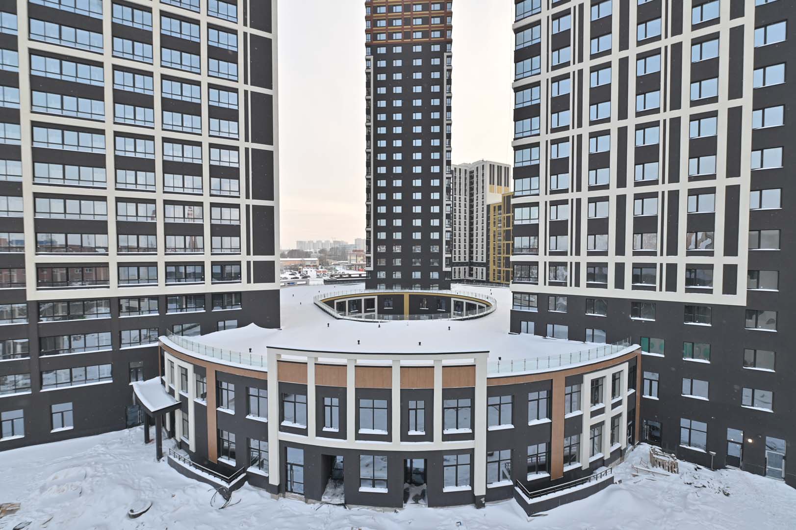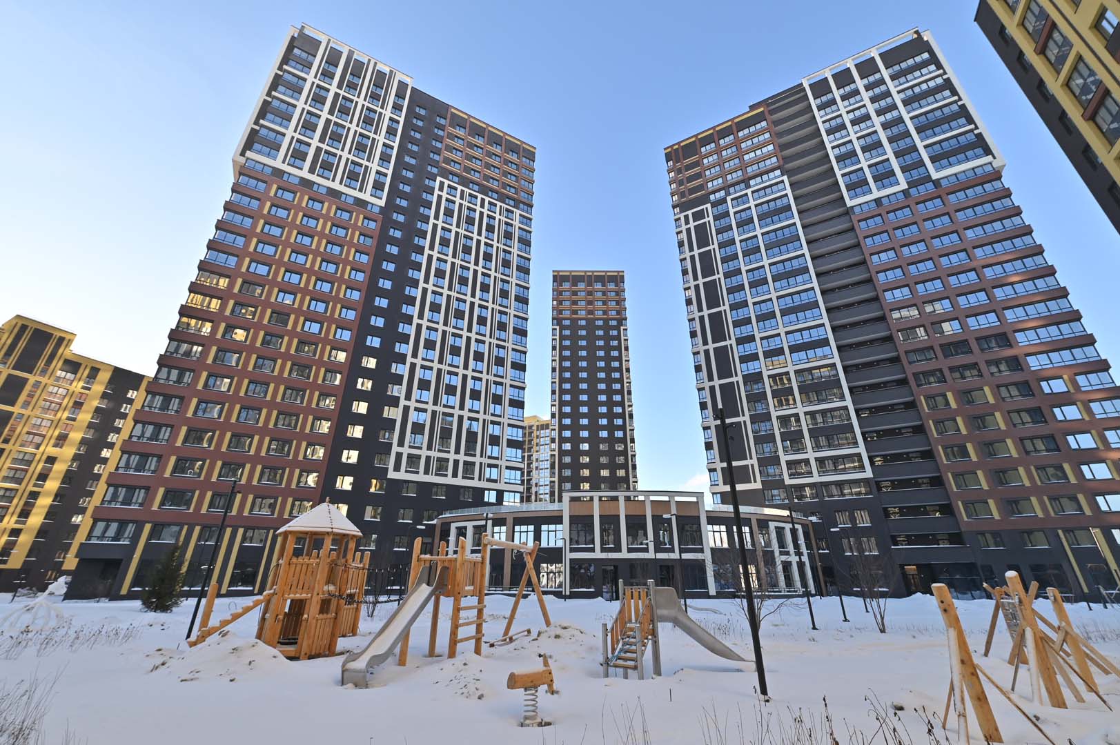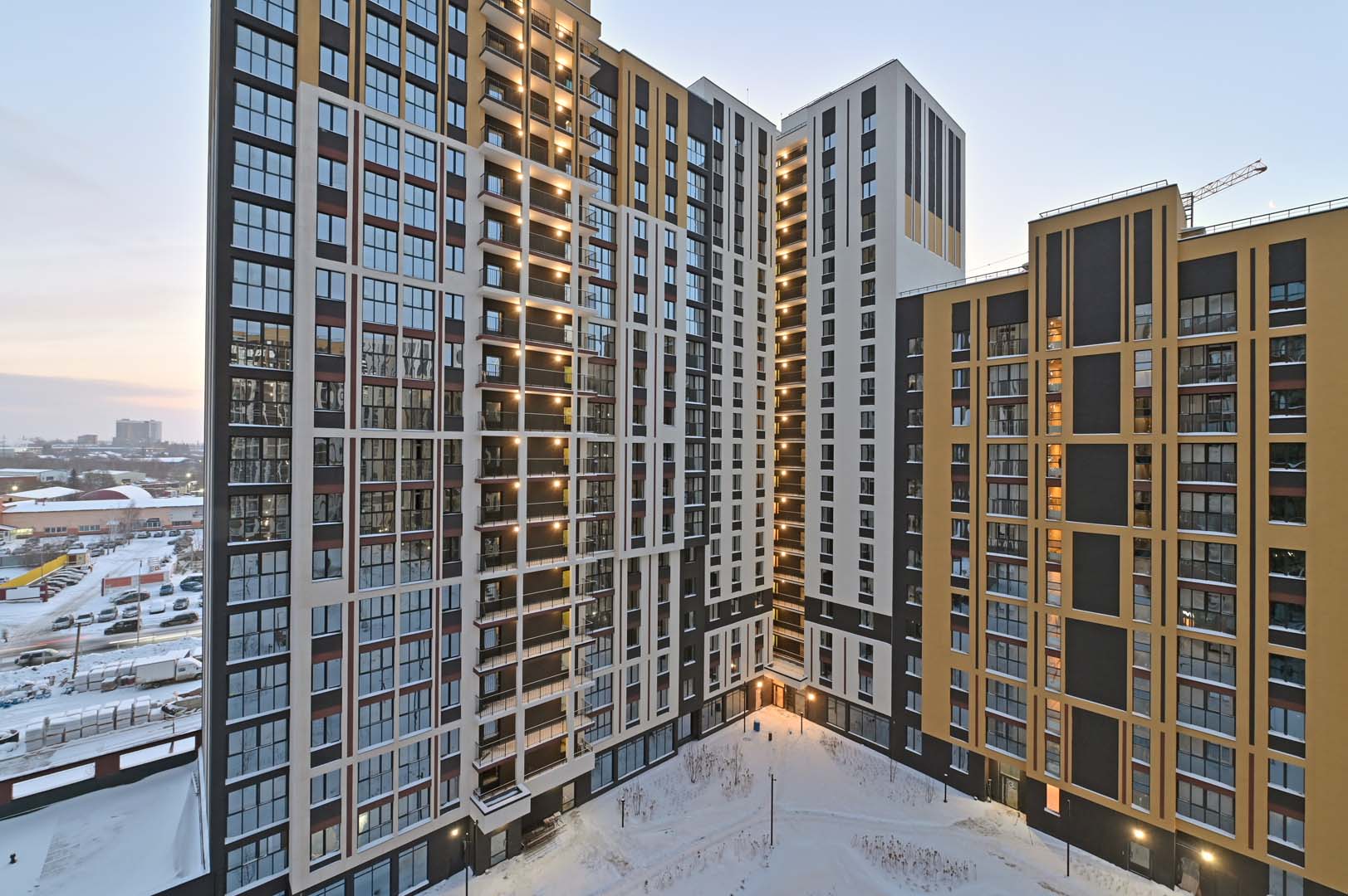 Первая – функциональные и практичные планировки и необычная архитектурная композиция из башни-трилистника в обрамлении эффектных многоэтажек.
