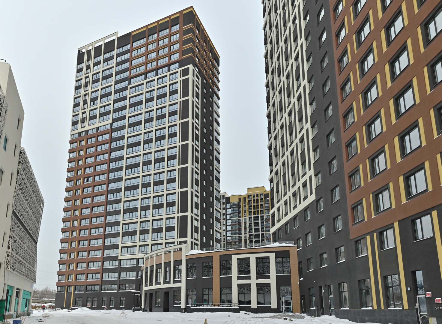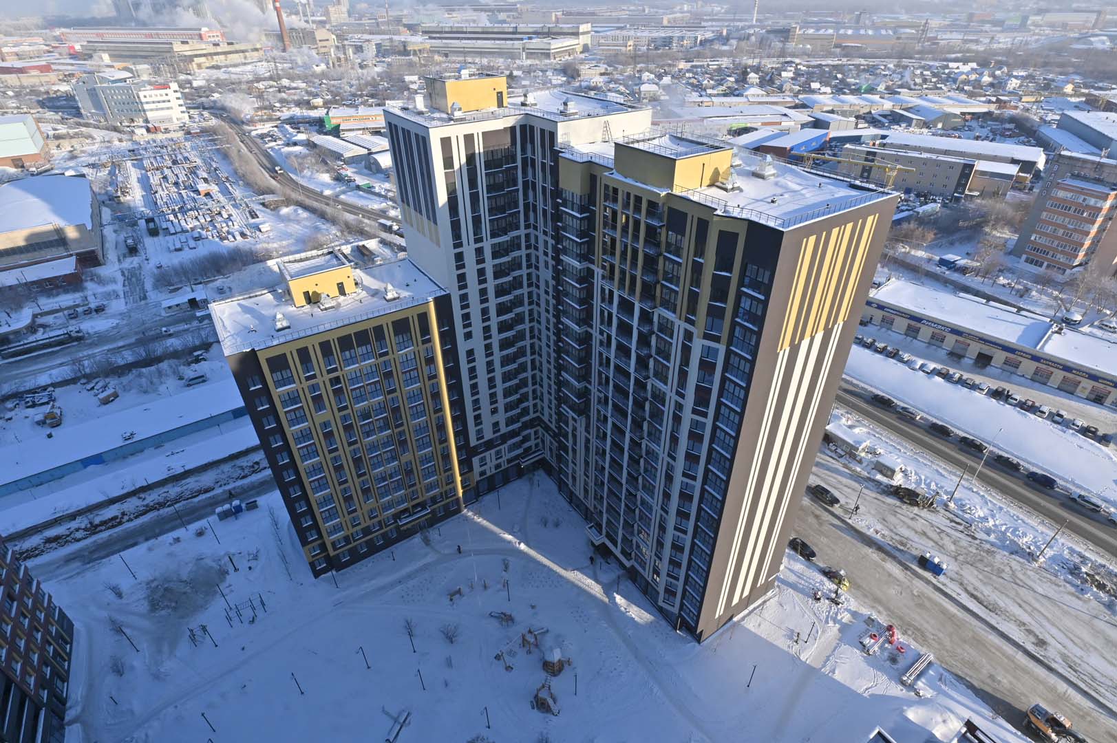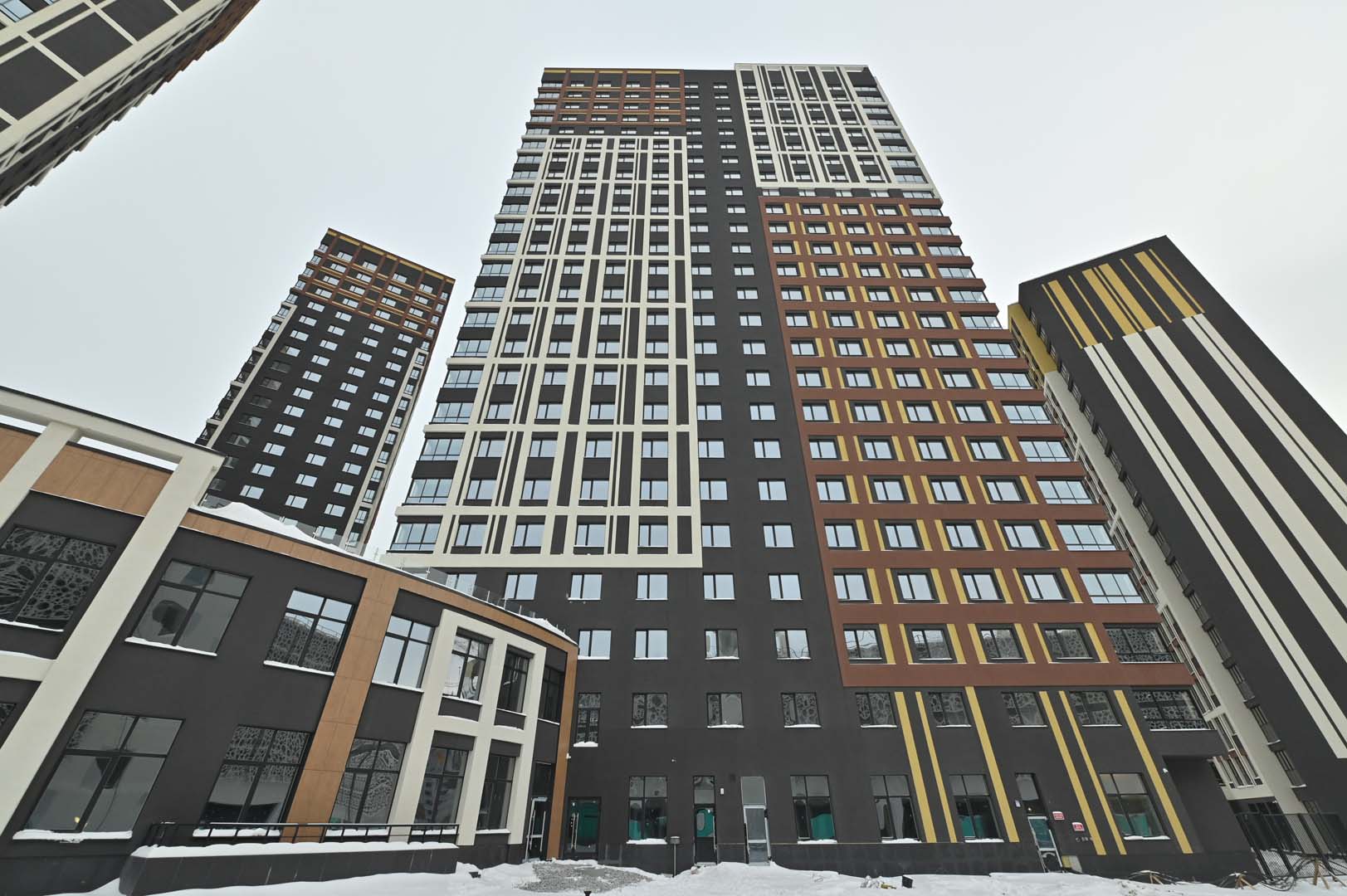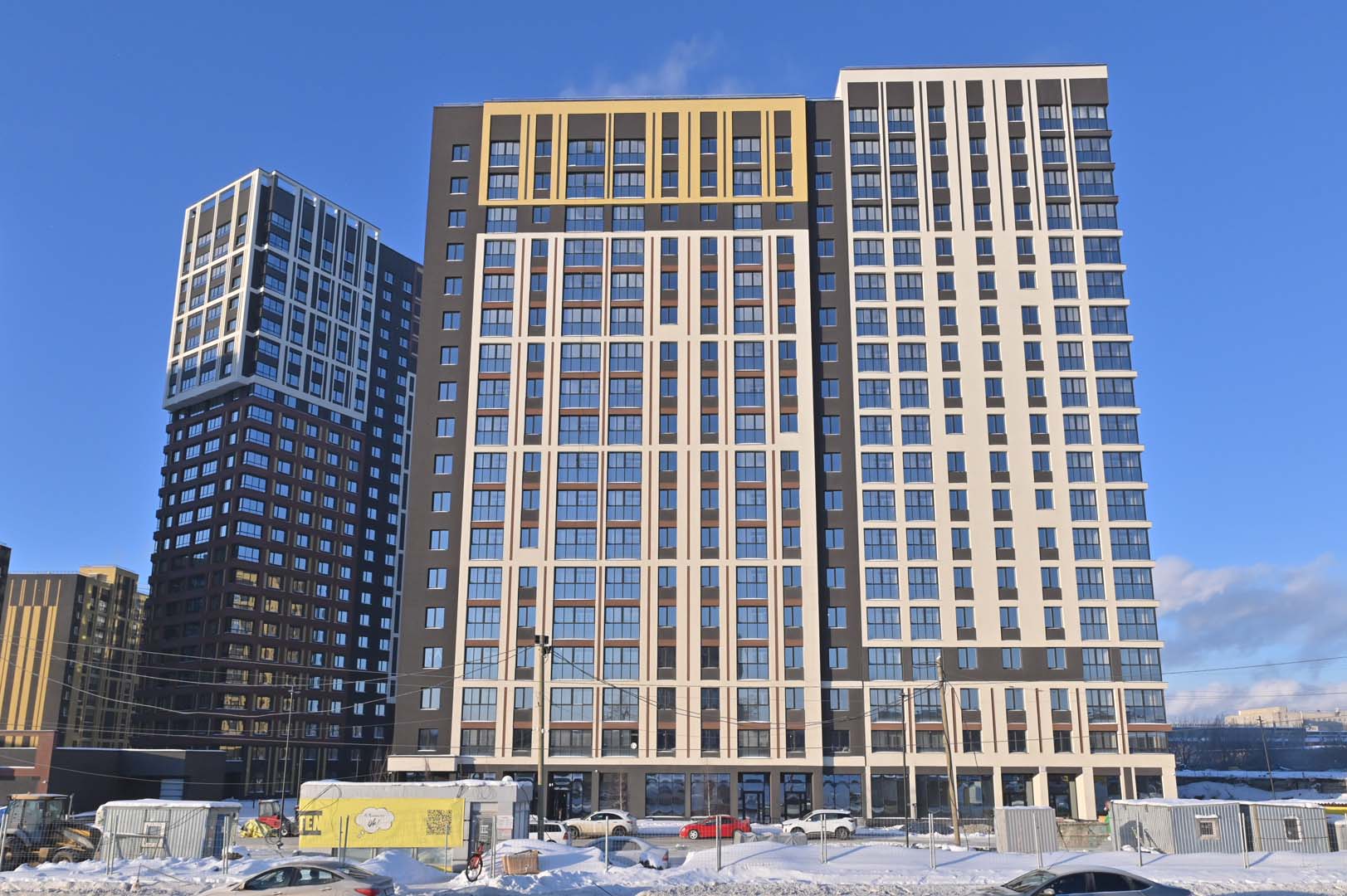 Первая – функциональные и практичные планировки и необычная архитектурная композиция из башни-трилистника в обрамлении эффектных многоэтажек.